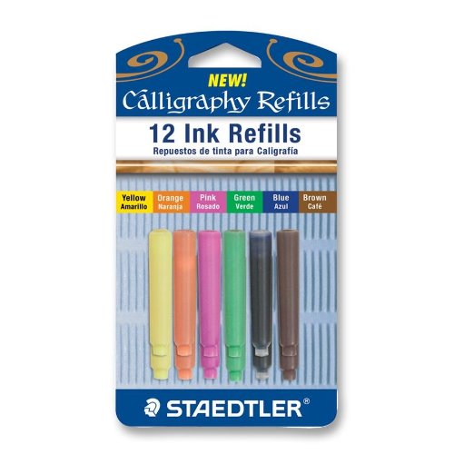 Staedtler Caligraphy Pen Refill Cartridges, 12 Assorted Colors (899RASBK12)