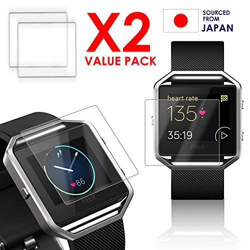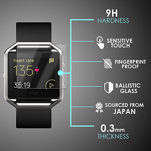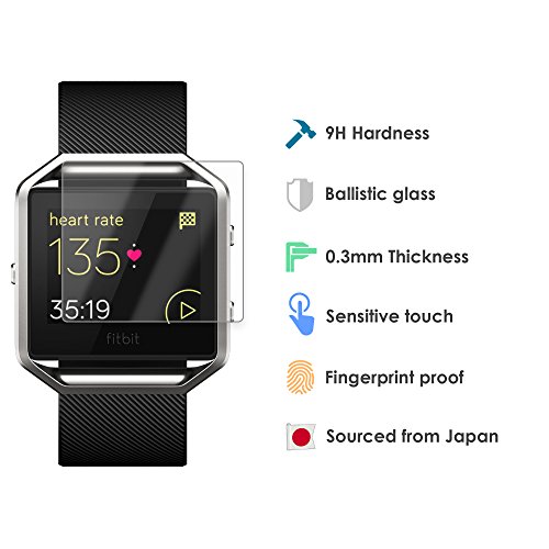 -. Title : Fitbit Blaze Tempered Glass Screen Protector - P.R.Im 9H Japanese Ballistic Glass Protection - 2 Pack - HD Clarity, Super Thin, FingerP.R.Int Proof, Easy Install Accessory to the Fitbit Blaze Band