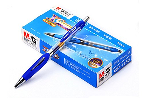 M&G Retractable Roller Ball Pen, Fine Point, Translucent Barrel,0.5mm,Blue Ink,Box of 12