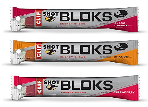Clif Shot Bloks - Variety Pack - Orange/Black Cherry/Strawberry (3 x 2.1oz Bars)