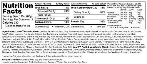 -. Binding : Health and Beauty -. Brand : Lean1 -. Feature : CURB YOUR HUNGER: When hunger strikes, turn to hearty and healthy meal replacement snack bar that beats all others - avoid unhealthy fast food and fill up with powerful protein and fiber. / INCREDIBLY HEALTHY: A much more satisfying choice that provides you with 20 grams of protein & 9 grams of fiber from whole fruits & veggies which promote strong muscle & healthy digestion. / REDUCE HARM TO YOUR BODY: Loaded with superfoods including 17 vital fruits and vegetables and green coffee bean extract to provide antioxidant power and to help burn fat a lot faster. / GREAT TASTING SUBSTITUTE: We get it - it's hard to choose healthier options because so many just don't taste so good. Our bars are available in three delicious chocolate, candy and cake flavors. / PERFECT FOR EXERCISE SESSIONS: Need some protein before or after you hit the gym? Our bars are the perfect choice as they provide you with the fuel you need to get a productive workout. -. Label : Lean1 -. Manufacturer : Lean1 -. ProductGroup : Health and Beauty -. ProductTypeName : HEALTH_PERSONAL_CARE -. Publisher : Lean1 -. Studio : Lean1 -. Title : 12 Pack Fat Burning Protein Bars – Gluten Free Energy Snack - 20g Protein, 17 Fruits and Vegetables, 9g Fiber - Green Coffee Bean Extract - by Lean1