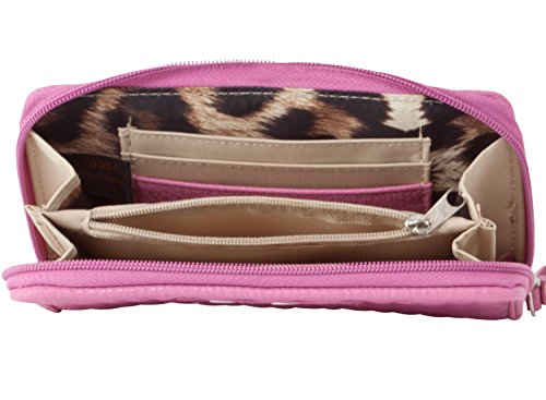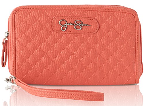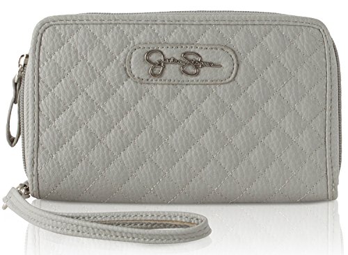 Carry your cash and cards in this classic Jessica Simpson Katie Wristlet Wallet, Exterior Features Quilted Design, Signature logo accent and Zip closure, Interior features; 3 credit card slots, 1 ID slots, bill pocket and zippered coin pocket. This wallet offers hands free design with the wristlet strap and exceptional organization in sleek styling.