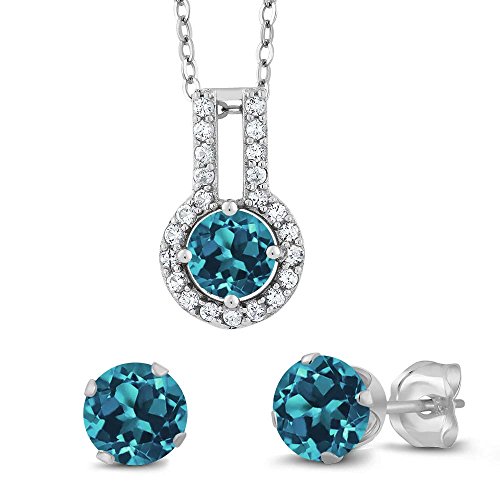 -. Binding : Jewelry -. Brand : Gem Stone King -. Color : London Blue and White -. Department : womens -. Feature : This item is proudly custom made in the USA / 100% Satisfaction Guaranteed / Gemstones may have been treated to improve their appearance or durability and may require special care. -. Model : MGZ-0234-RD-T-LBL-T-LBL-CS-W-SS -. NumberOfItems : 1 -. PackageQuantity : 1 -. ProductGroup : Jewelry -. ProductTypeName : FINENECKLACEBRACELETANKLET -. Title : 2.03 Ct Round London Blue Topaz 925 Sterling Silver Pendant Earrings Set