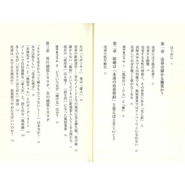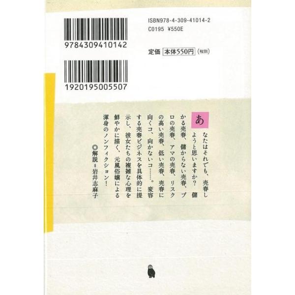 【商品説明】 定価(税込み):594円 値引き:5% OFF 儲かる売春、儲からない売春、プロの売春、アマの売春、売春に向くコ、向かないコ……。変容する売春ビジネスを具体的に提示し、彼女達の複雑な心理を鮮やかに描く、元風俗嬢による渾身のノンフィクション! バーゲンブック 新品 特価 格安 文芸 ノン フィクション ドキュメンタリー プロ ビジネス 心理 春 | |