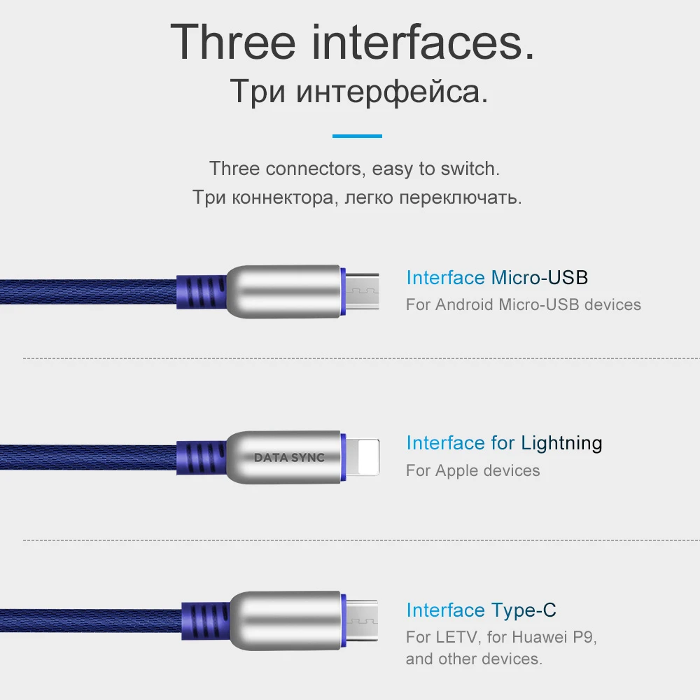 Option 2:Three in one cable for Lightning & Micro USB & Type C