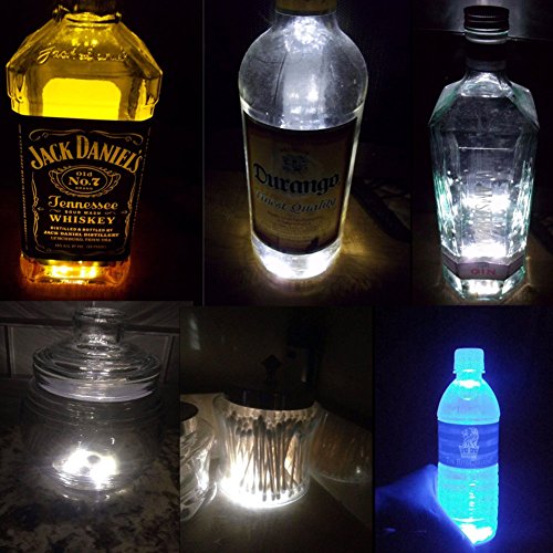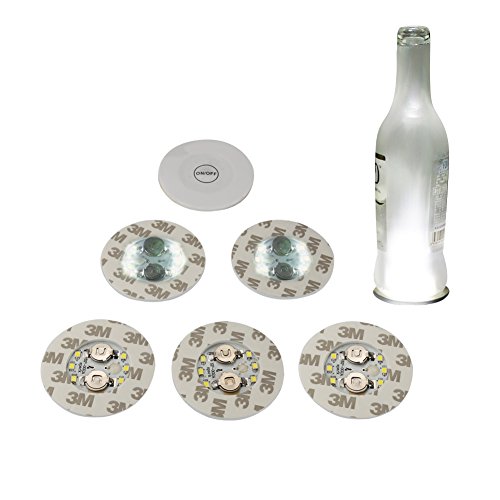 Accmor 6 PCS Wine Bottle Lights, 6 LEDs Sticker Coaster Discs Lights for Wine Liquor Bottle Clear Glass Decoration for Halloween Party, Wedding, Bar, Christmas(UL Certified, Cool White)