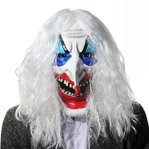 -. Title : Halloween Mask White Hair Clown Face Fancy Party Costume Scary Dress Props