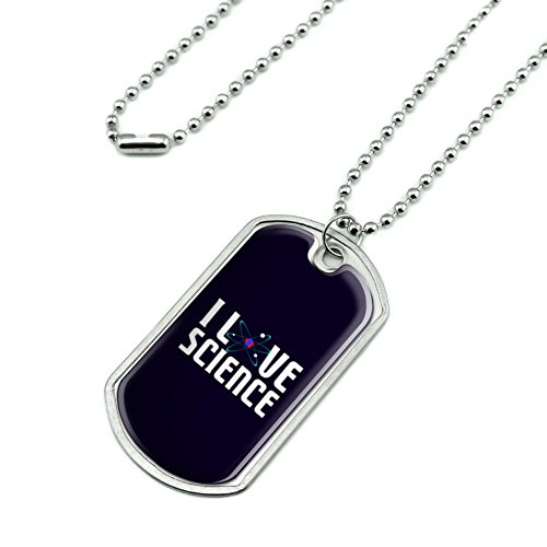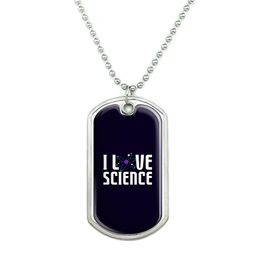 -. Binding : Jewelry -. Brand : Graphics and More -. Color : Metallic -. Department : womens -. Feature : Our dog tag features a fun, resin-topped printed graphic, as shown, expressing your unique interests and personality! / Want to get even more personal? The backside is perfect for engraving. (Unfortunately, we do not offer engraving services; please check with your local engraving shop!) / Dog tag is made of stainless steel and is approximately 2" x 1.1" in size. A 24" (61cm) adjustable chain is included. / Science is awesome! Show your love with this fun design. / A Graphics and More product. -. Label : Graphics and More -. Manufacturer : Graphics and More -. MPN : DOGTAG.CHAIN.Z000735 -. NumberOfItems : 1 -. PartNumber : DOGTAG.CHAIN.Z000735 -. ProductGroup : Jewelry -. ProductTypeName : FASHIONOTHER -. Publisher : Graphics and More -. Studio : Graphics and More -. Title : I Love Science Atom Military Dog Tag Pendant Necklace with Chain