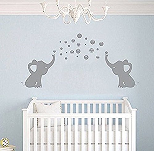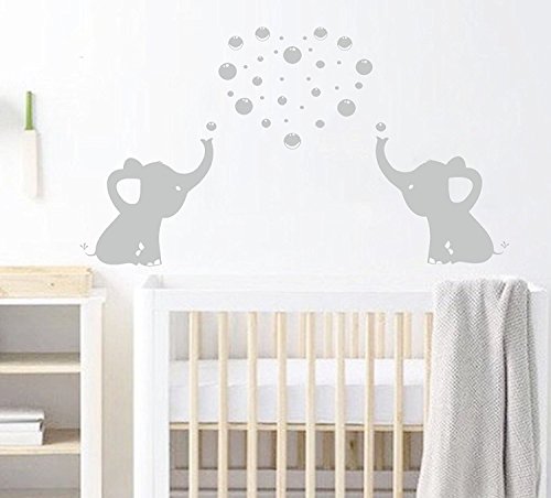 LUCKKYY Cute Elephant decor Family Wall Decal With Bubbles Art Baby Nursery Wall Decor Wall sticker(Grey)