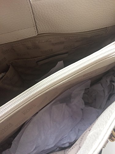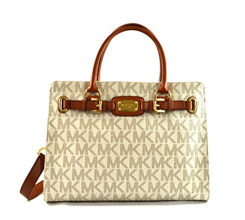Product Description Michael Kors Large East West Tote is crafted in Michael Kors Signature PVC coated twill with luggage tone leather trim and polished golden tone hardware. The spacious interior is lined in Michael Kors logo fabric and features a center padded zippered pocket specially designed to fit most tablets and smaller laptops. There is an open compartment on either side with a center tab and magnet closure. Within the two open compartments is an inner zippered pocket and (4) open slip pockets. Michael Kors belt and buckle detailing and logo plaque accents the front. The flattened bottom panel offers (4) elevated feet for additional protection. There are dual leather handles with a drop of about 4 inches, or use the single leather and golden chain non-removable shoulder strap. The overall measurements are approximately 14.5' (L) at the bottom (only 10" at narrowest at the top) x 10.5' (H) x 5.5' (W). It has an MSRP of $368.00. 0