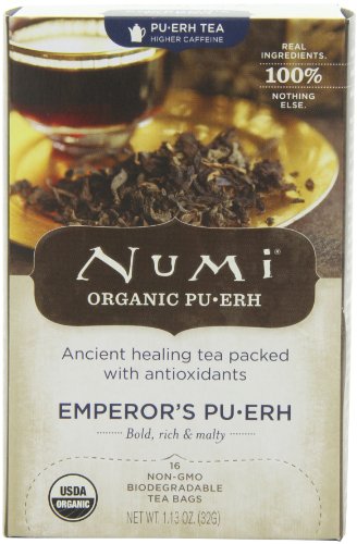 Numi Organic Tea Emperor's Pu-erh, Full Leaf Black Pu-erh Tea, 16-Count non-GMO Tea Bags (Pack of 2)