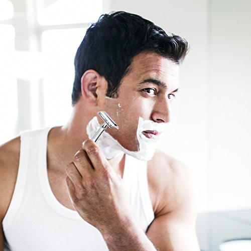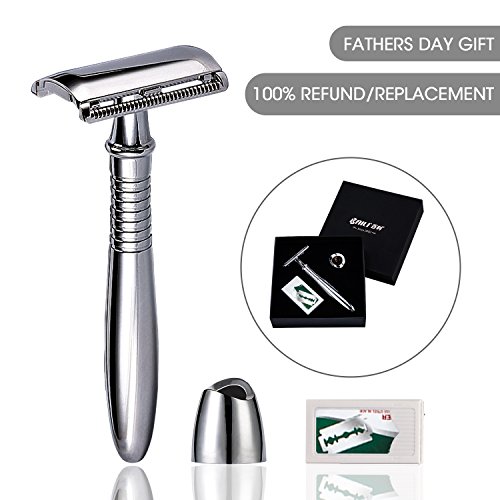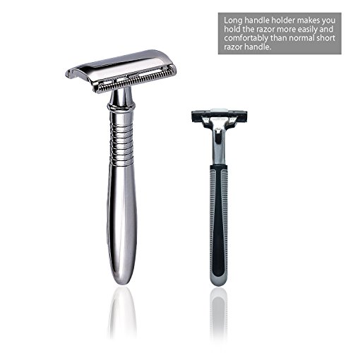 - Safety Razor for Men: This is mens razor for shaving, the safety razor blade is completely encased in the head of razor, you don't worry about nicks and cuts on your skin when shave with double edge razor. Advanced alloy material, never gets rust and anti-corrosion. Feel free to have a deep clean allover body. Enjoy your shaving life.