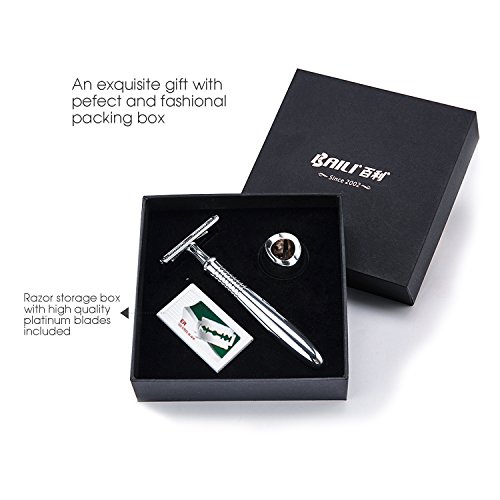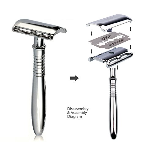 - 5 Double Edge Razor Blades with Box: Made of Platinum material, razor blade makes your shaving more smoothly and won’t pull your hair. The blades box has two compartments for new and used blades, Please put the disposable blades into the downside blade compartment and keep it away from kids.