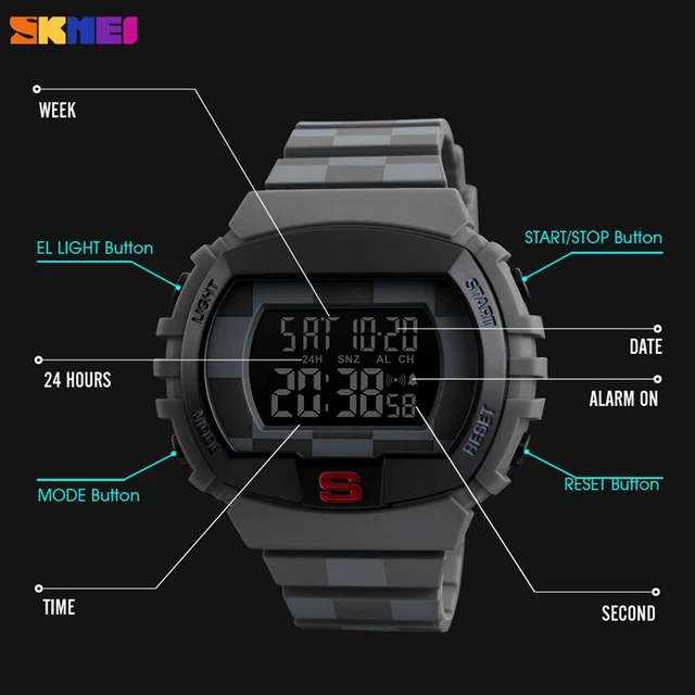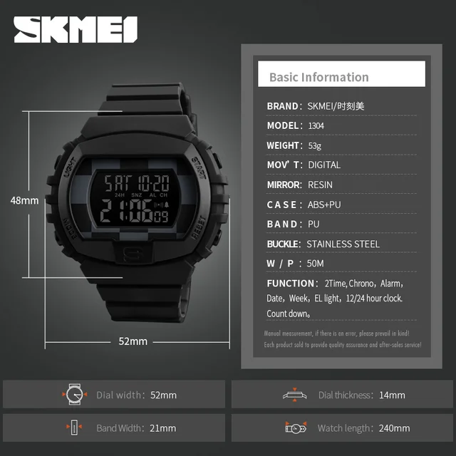 | [해외] SKMEI 남성 스포츠 시계 다기능 카운트 다운 크로노 패션 남자 시계 방수 디지털 손목 시계 Relogio Masculino 1304 |