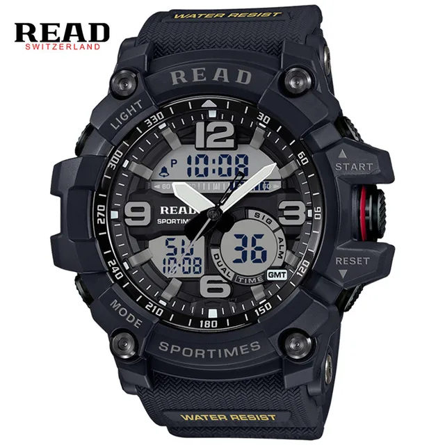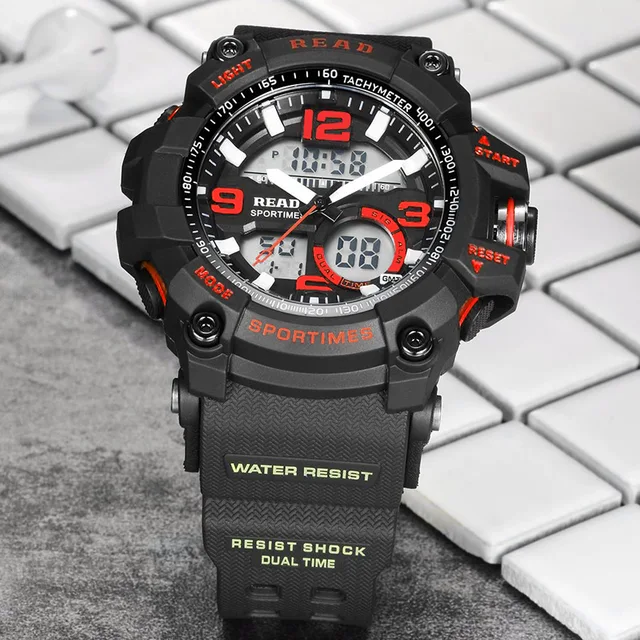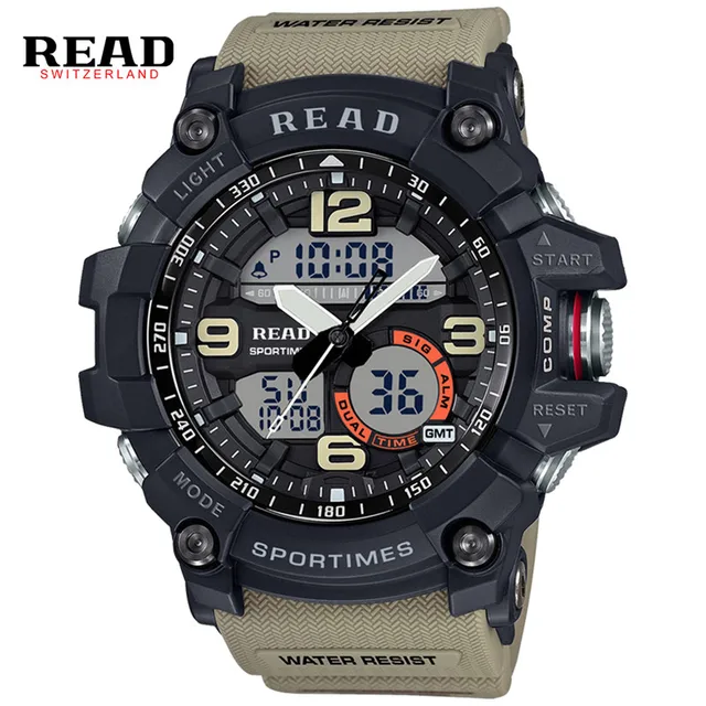 | [해외] 읽기 최고 새로운 90001 남성 스포츠 군사 석영 시계 라운드 55 미리메터 다이얼 큰 디지털 규모 아날로그 손목 스톱워치 Relogio militan |