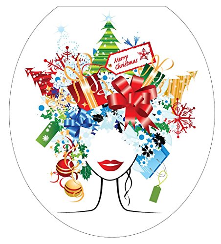-. Title : Toilet Tattoos TT-X612-R Christmas Lady Decorative Applique For Toilet Lid, Round