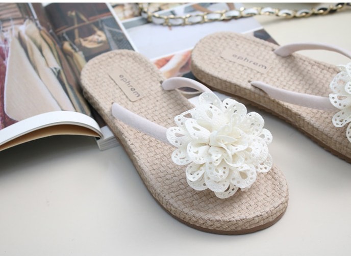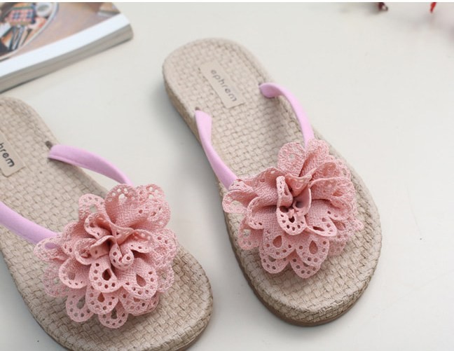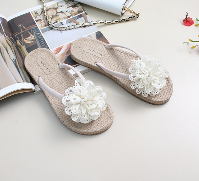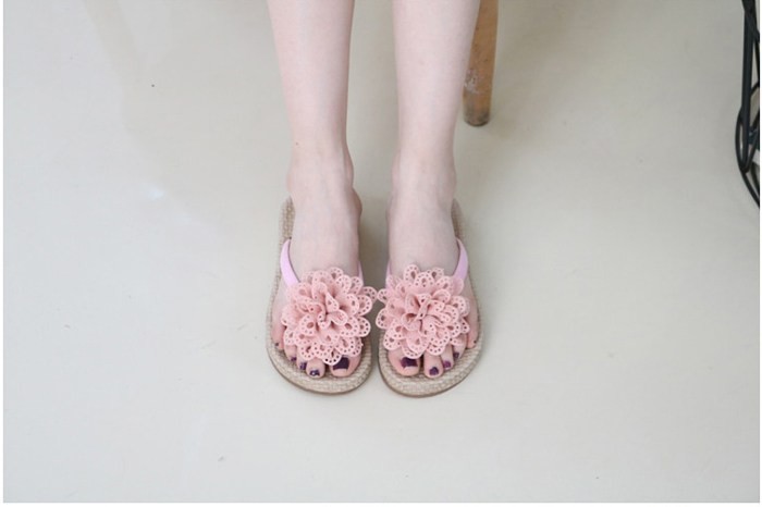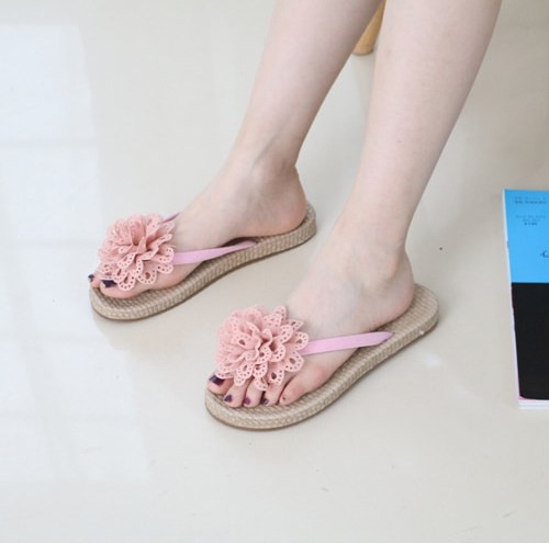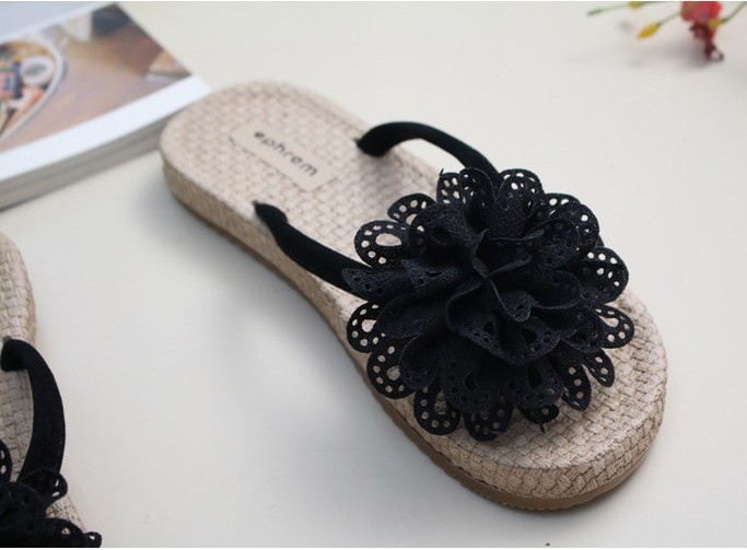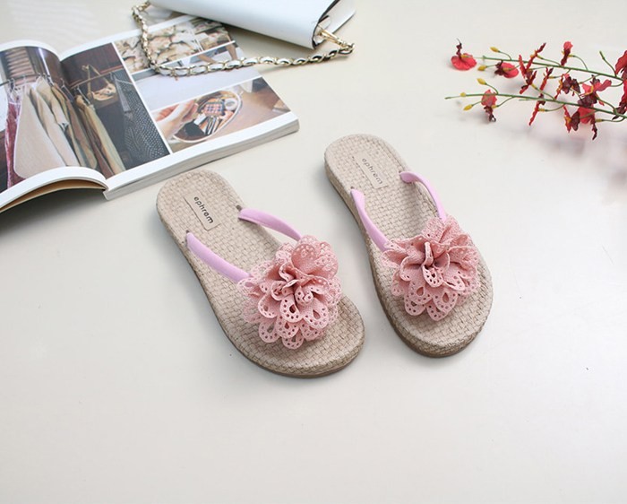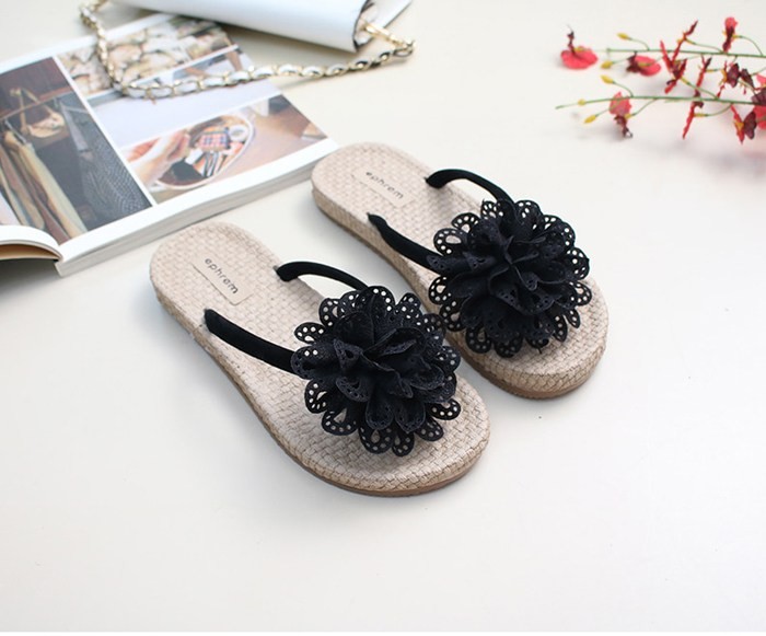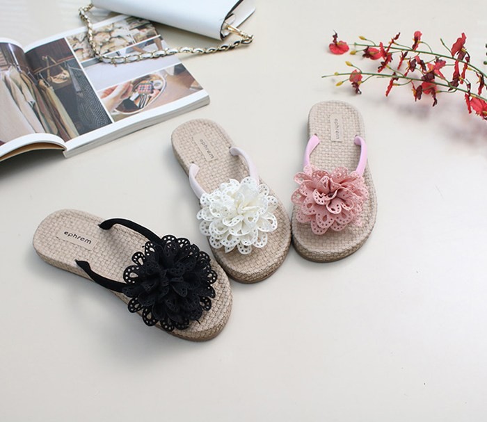 商品名:サンダル レディース ペタンコ コサージュ フラットサンダル トングサンダル 2018 夏 ファッション 靴 婦人靴