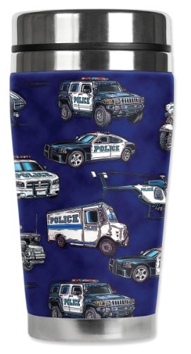 Mugzie Police Cars Travel Mug with Insulated Wetsuit Cover, 16 oz, Multicolor