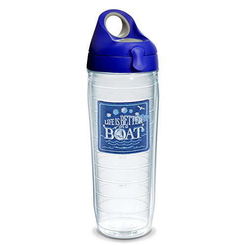 Tervis Live Is Better on The Boat Emblem Water Bottle with Royal Blue Wb Lid, 24oz, Clear