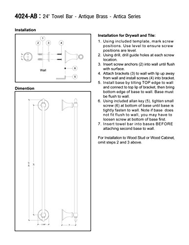 MODONA 24” Towel Bar – Antique Brass – Antica Series - 5 Year Warrantee