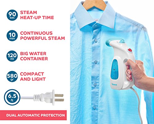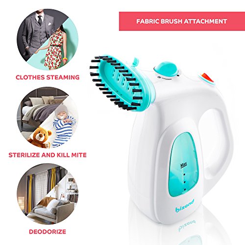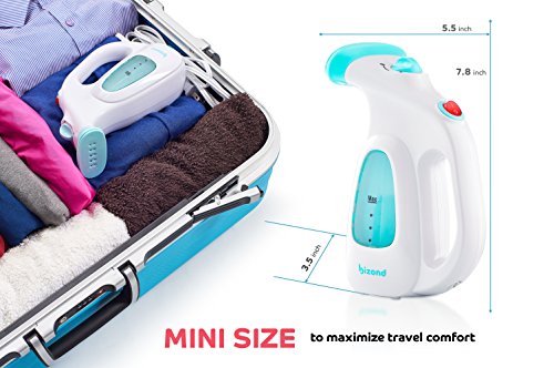 BIZOND Portable Garment Steamer for Clothes, Fabric, Dresses - Safe and Little Handy, Anti-Spill - Home and Travel - Best Compact Mini Steamer with Accessories - Handheld Steamer Economy Model (White)