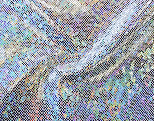 FabricLA Shattered Glass Hologram Stretch Fabric by The Yard, 10 yd., Silver/White
