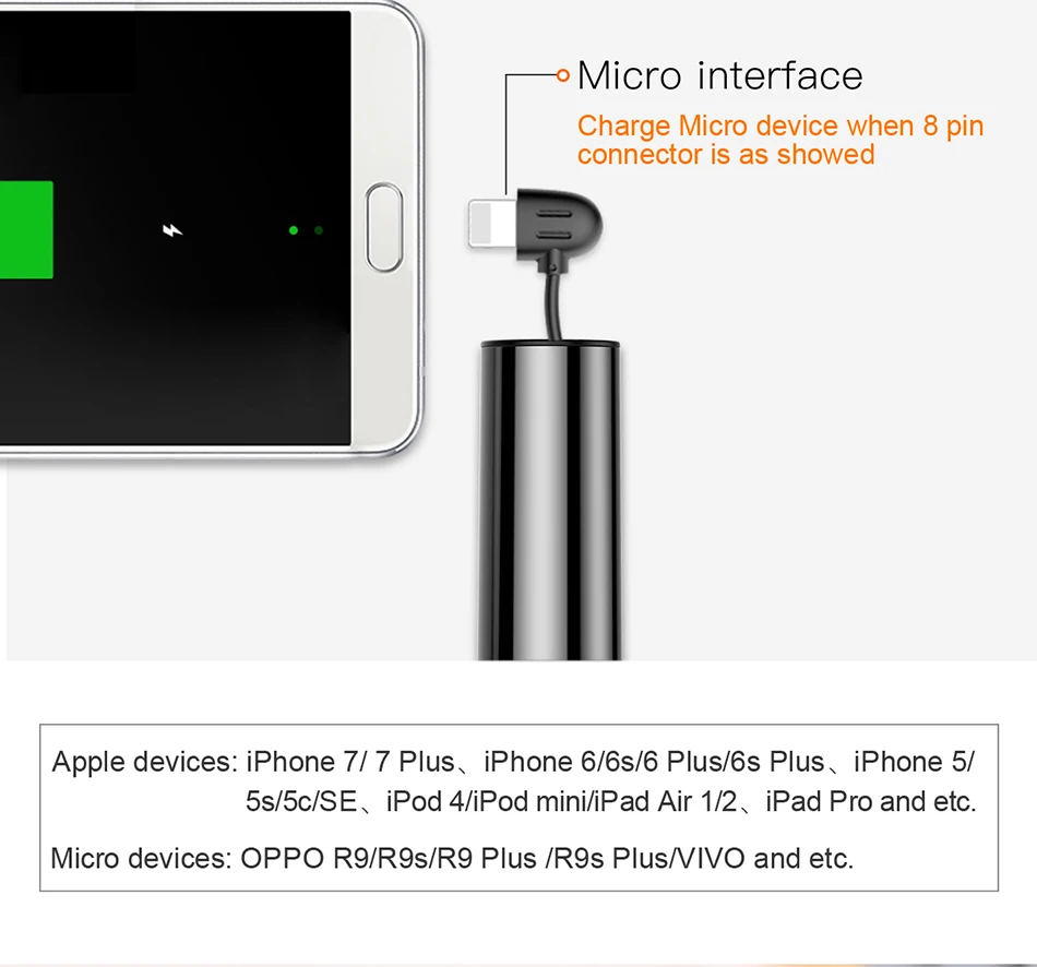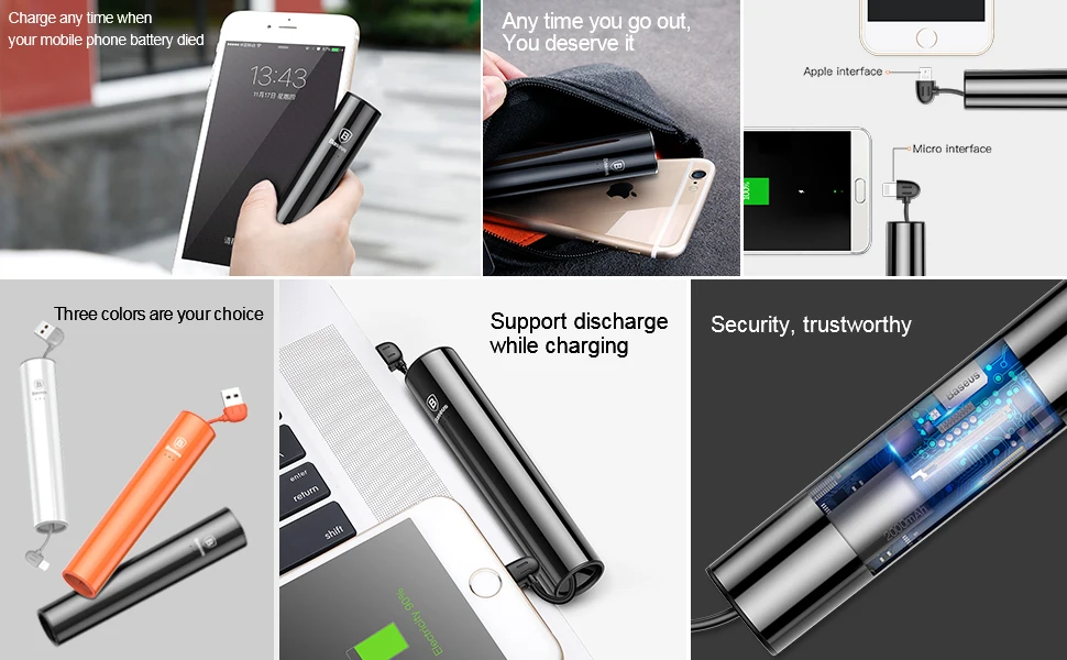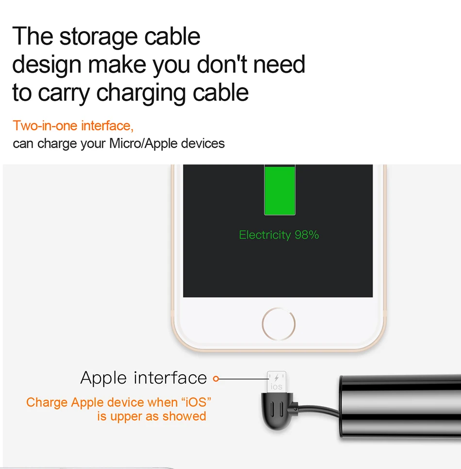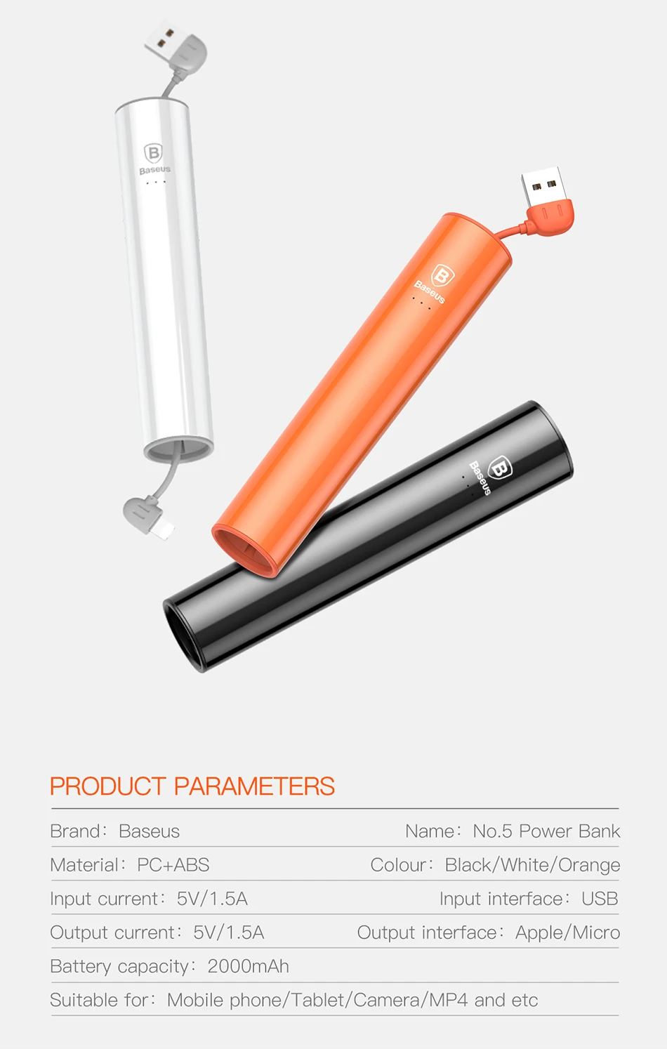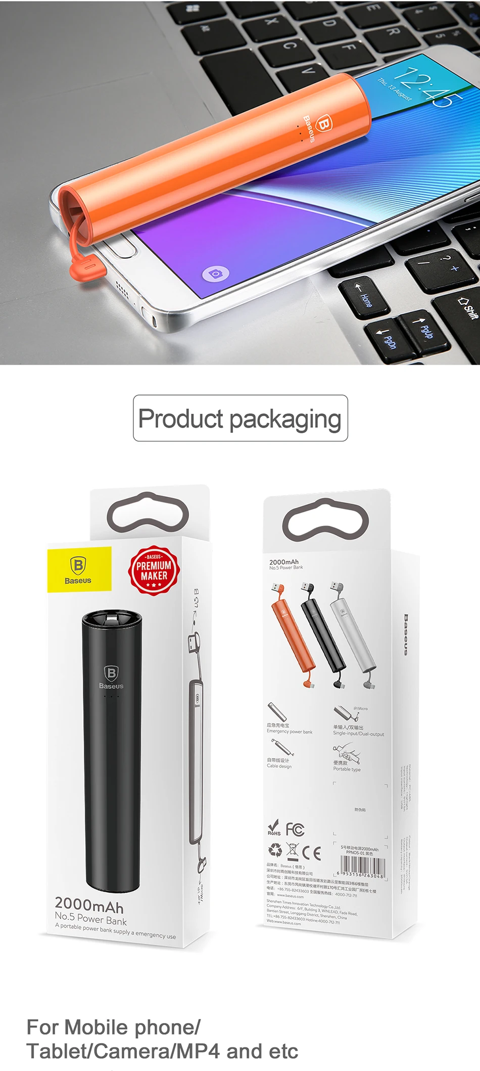 Baseus 2000mAh Portable Power Bank For iPhone 5 6 7 8 Battery Charger Powerbank For iPhone and Micro USB Phone Battery Charger