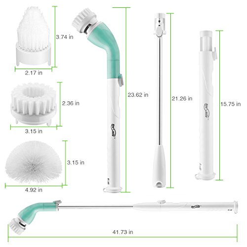 Housmile Electric Spin Scrubber, Cordless Tub and Tile Scrubber with 3 Replaceable Cleaning Scrubber Brush Heads, 1 Extension Arm and Adapter for...