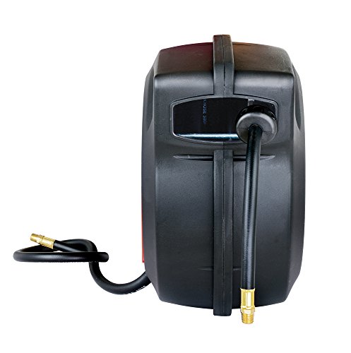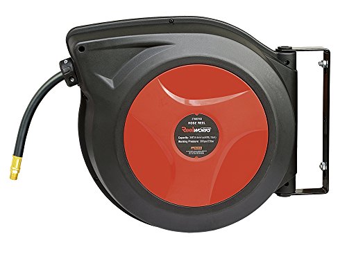 ReelWorks 27807153A Plastic Retractable Air Compressor/Water Hose Reel with 3/8" x 50' Hybrid Polymer Hose, Max. 300 psi