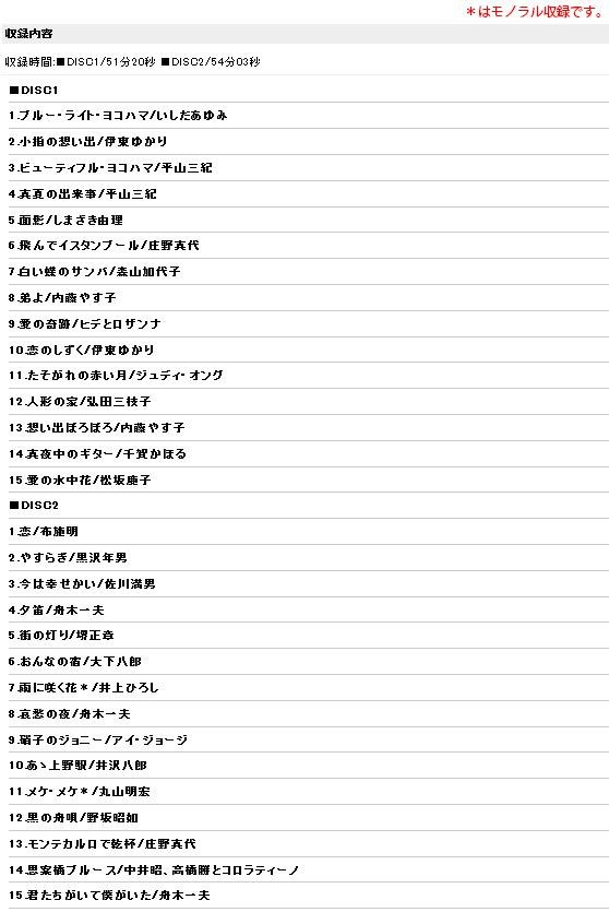 思い出の歌謡ヒット曲を綴ったCD2枚組全30曲は、魅力いっぱいの内容!!ひと時の思い出に浸りたいあなたへ贈るファン待望の必聴盤です。