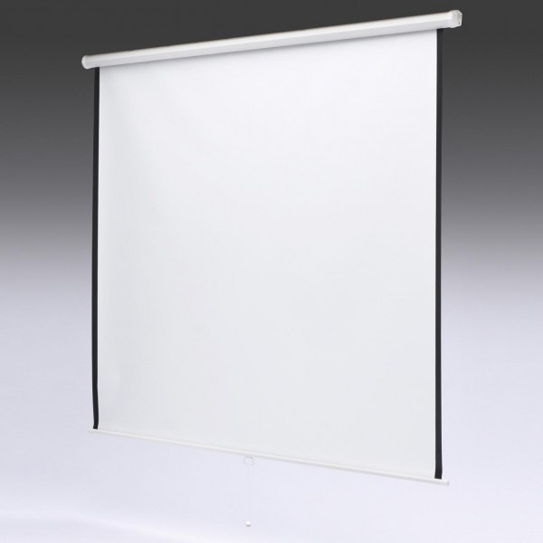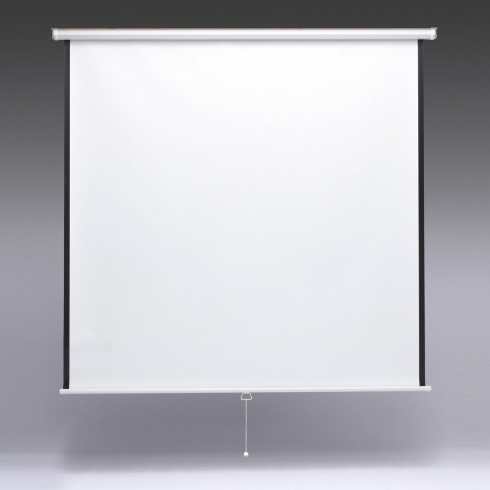 | 吊り下げ式でスロー巻き上げタイプのプロジェクタースクリーン。 |