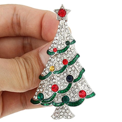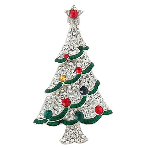 EVER FAITH Silver-Tone Austrian Crystal Red Star Ribbon Christmas Tree Brooch Pin Multicolor
