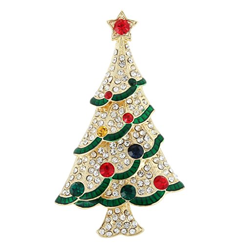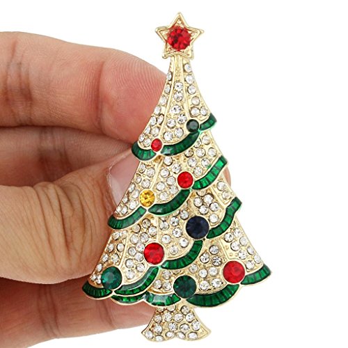 EVER FAITH Gold-Tone Austrian Crystal Red Star Ribbon Christmas Tree Brooch Pin Multicolor