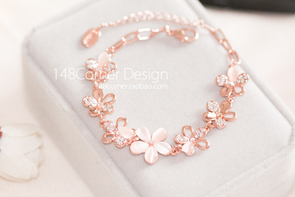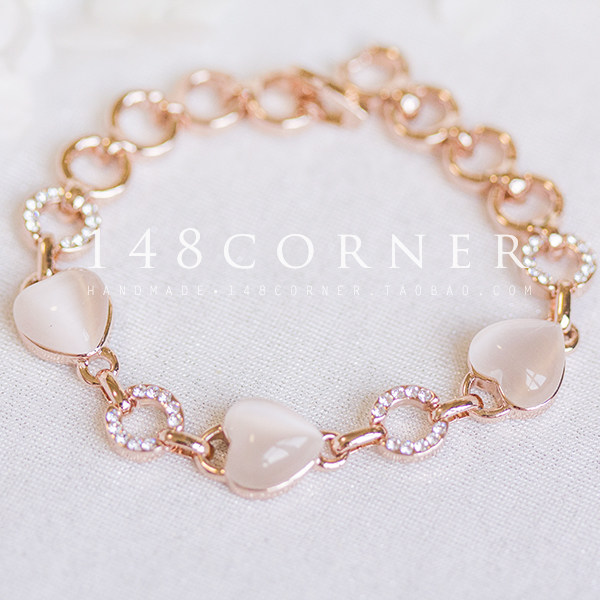 镀18K玫瑰金 水钻 猫眼石