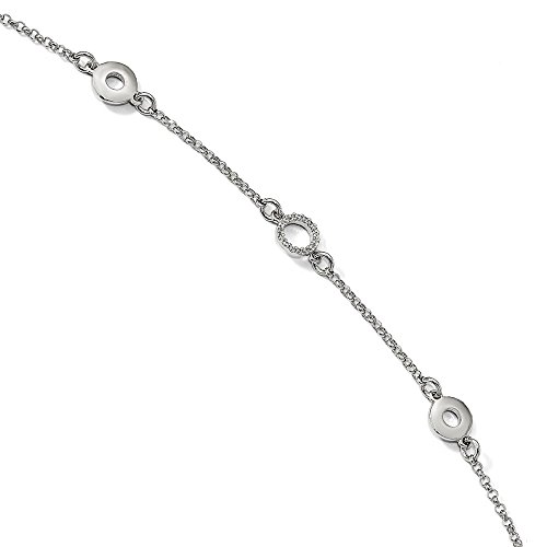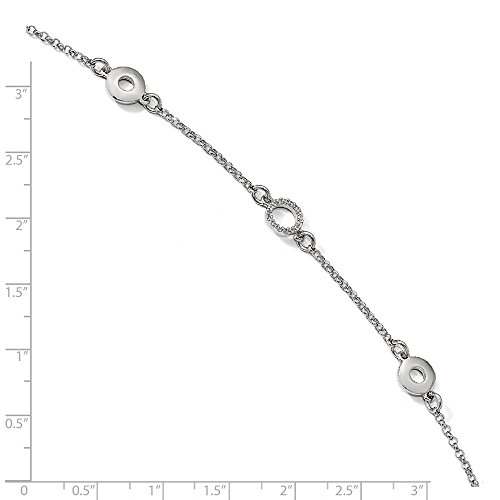 Solid Sterling Silver Polished CZ Cubic Zirconia with 1in ext. Anklet 9" - with Secure Lobster Lock Clasp (7.8mm)