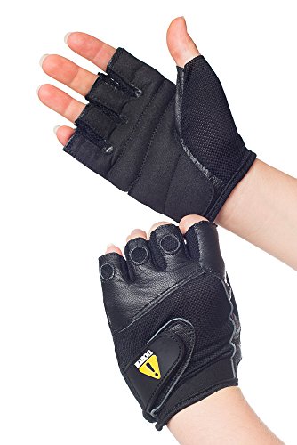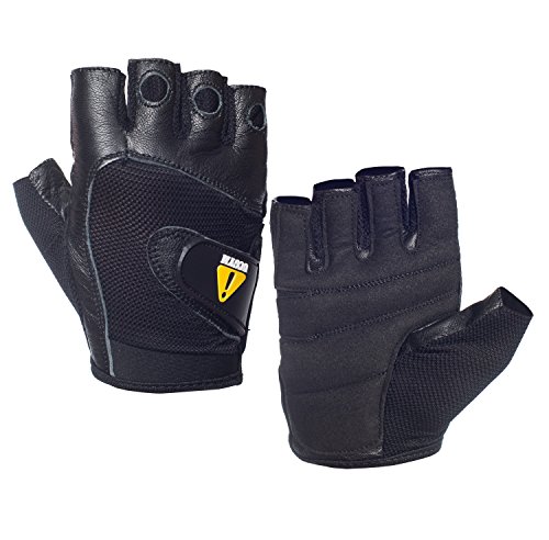- Wrist wrap support with Velcro - Padded Palm and Fingers Protection - Double Stitched - Soft Genuine Leather and Flexible Breathable Fabric Combination - Hand Washable