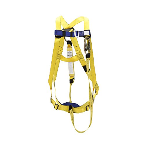 Peakworks Fall Protection V8252366 OSHA/ANSI Compliant Safety Harness and 6 ft. Lanyard Kit - Permanent Attachment, Universal Fit, Polyester Wedding, (1) Snap Hook, Yellow/Blue