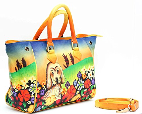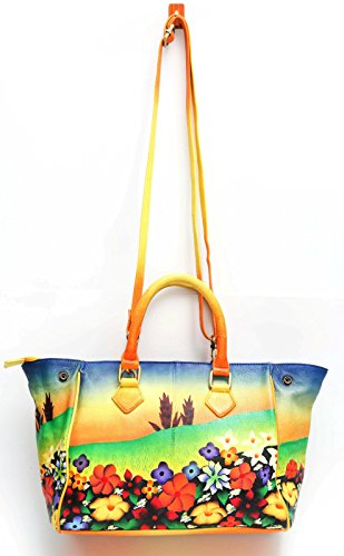 -. Feature : SAVE 50% PLUS OF YOUR PURCHASE: The best colectable designer leather bag at the most economical P.R.Ice! / EXQUISITE CRAFTSMANSHIP Vibrant one-of-a-kind designer leather purse is handmade and hand-painted by artisans in India, each bag is an individual masterpiece. / VINTAGE STYLE A style statement that won't go unnoticed! Make a statement with this beautiful hand painted leather hobo bag This bag's rich colors will compliment any outfit while elegant and the unique design highlights feminine elegance. / PLENTY OF SPACE to hold of your essentials and then some , 10"(H), 16"(L), 4.5"(D) , Two roomy inner compartments devided by zippered compartment , zipper pocket , cell phone pocket , Two top handles and long adjustable and removable shoulder strap. / MAKES A STUNNING and SOPHISTICATED GIFT for Your Favorite Lady, even if that special person is You!
