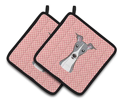 Caroline's Treasures Checkerboard Pink Italian Greyhound Pair of Pot Holders BB1236PTHD, 7.5HX7.5W, Multicolor