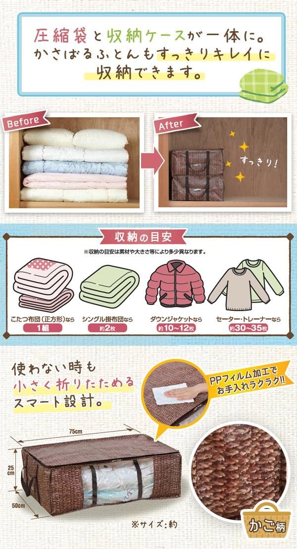 | 圧縮袋と収納ケースが一体に♪かさばるふとんもすっきりキレイ!! |