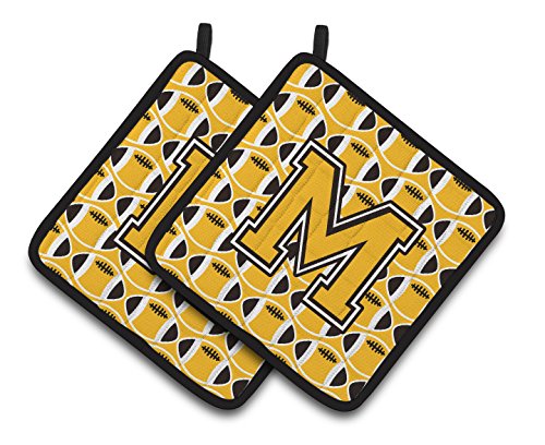 Caroline's Treasures Letter M Football black, Old Gold & White Pair of Pot Holders CJ1080-MPTHD, 7.5HX7.5W, Multicolor