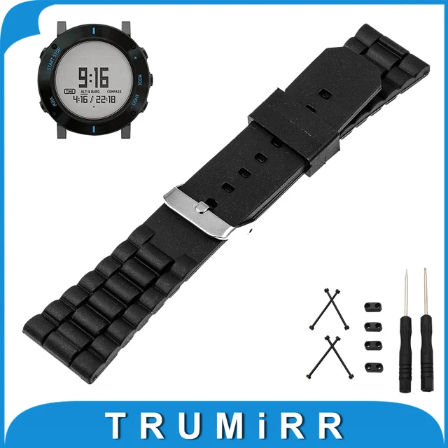 | [해외] 24 미리메터 실리콘 고무 시계 밴드 스테인레스 스틸 핀 버클 스트랩 + 러그 어댑터 + 도구 suunto 코어 손목 벨트 팔찌 블랙 |