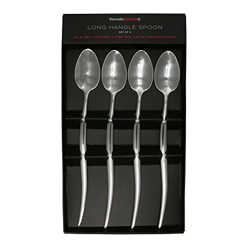 Stainless Steel Long Handle Spoon by DenadaDenada, 4-Pack Specialty Spoon Set, 8" Ice Cream Spoons Great for Latte, Iced Tea, Coffee, Parfait, Cocktails and Deserts, Dishwasher Safe