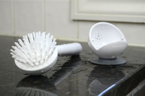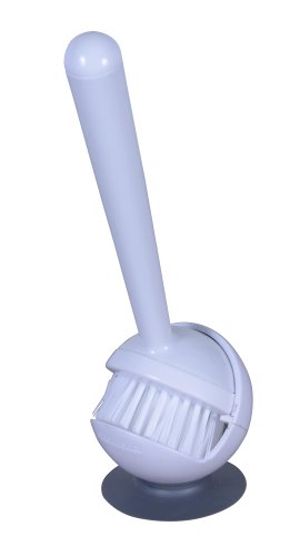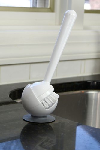 Casabella Get a Grip Long Handle Dish Brush with Suction Base, White
