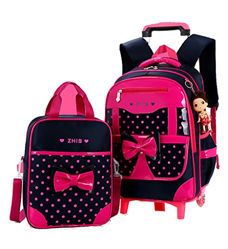 -. Title : Meetbelify Rolling Backpacks For Girls School Bags Trolley Handbag With Lunch Bag