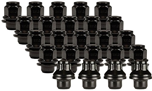 Black Bulge Medium Mag With Washer Toyota Style Lock & Lug Installation Kit (20 Nuts & 4 Locks) 12mm 1.50 Thread Pitch 1.47" Long - .73" Shank Dia - .60" Shank Length - 21mm Hex
