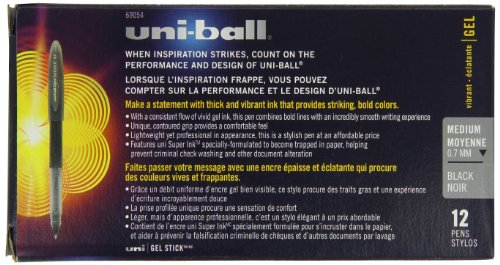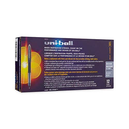 Uni-Ball Gel Stick Pens, Medium Point, Black Ink, 12-Count