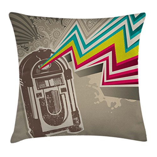 Jukebox Throw Pillow Cushion Cover by Ambesonne, Antique Vintage Retro Radio Party with Colorfu...