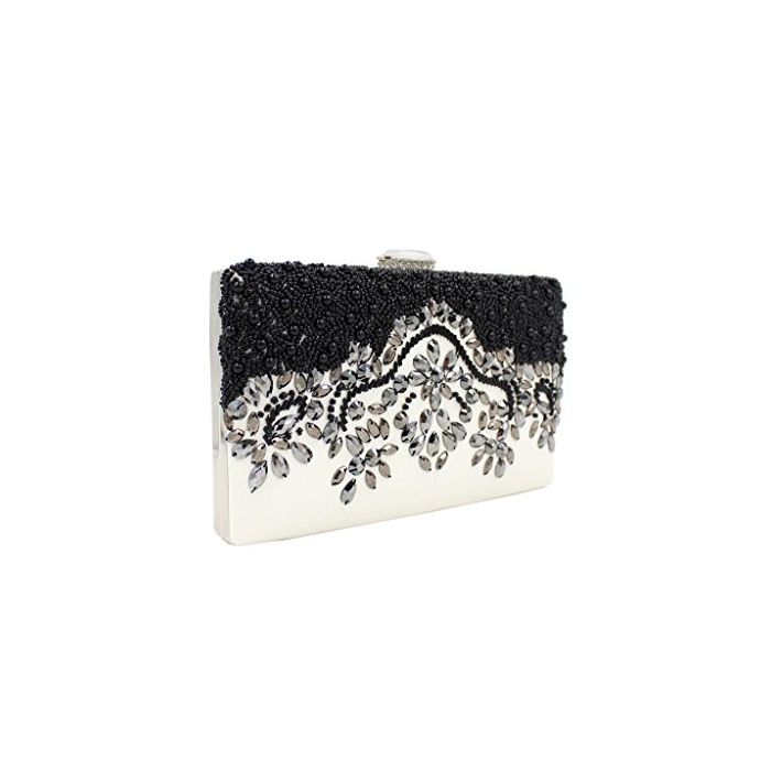 Tom Clovers PU레더 라인 스톤 클러치 백 결혼식 이브닝 파티 백 화이트