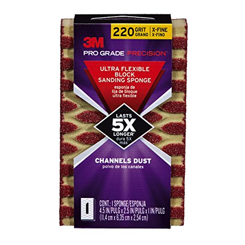 3M Pro Grade Precision Ultra Flexible Block Sanding Sponge, 4.5 x 2.5 x 1-Inch, 220-Grit, X-Fine